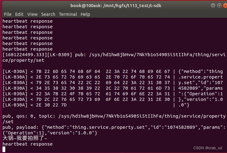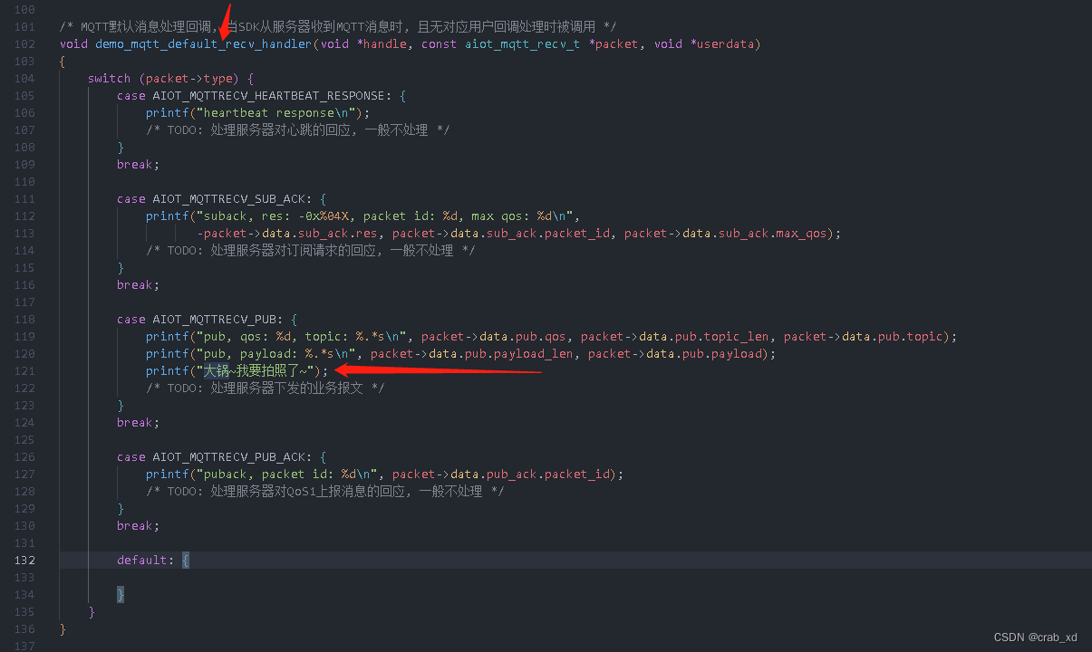 这时候明白我为什么添加功能的时候不用bool类型而用枚举类型了吧?因为如果返回的值的可能性大于1,那么我就得对返回的内容进行处理,json格式又不好直接转为字符串,那就得用cjson,很麻烦。既然如此,那让它返回值只有一个,只要有值返回就证明改拍照了,这样就偷了个懒。