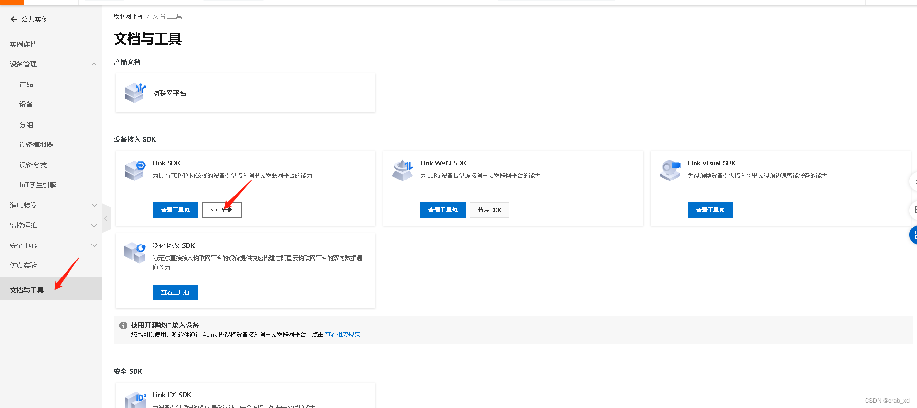 点击“文档与工具”,在link SDK中点击“SDK定制”,如图所示。