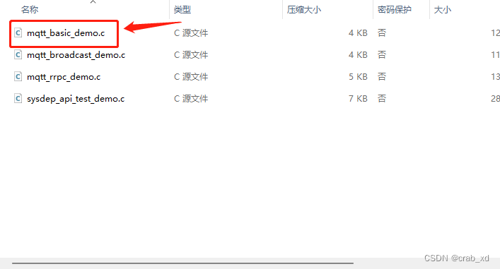c-sdk->LinkeSDK->demos,可以看到官方给了挺多示例,想要完成我们所需的功能,只需要留下“mqtt_basic_demo.c”这个文件就够了,其他的文件可以删掉。