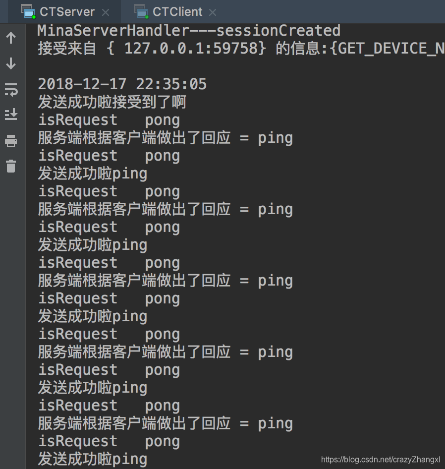 这些代码大家百度mina都是能够搜索到的,我们只要知道大致的步骤是服务端分配特定的端口初始化服务端连接,设置handler进行各种处理然后添加自己需要的过滤器来实现log日志或者心跳包的功能。下面给出了部分代码,具体的代码后面会给出demo。