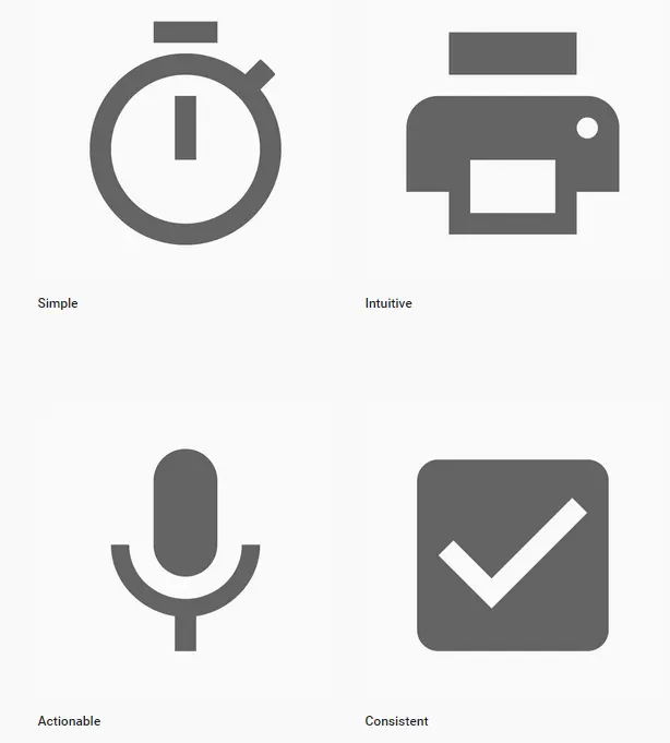 应用图标和功能图标呈现应该一致与清晰,包括,