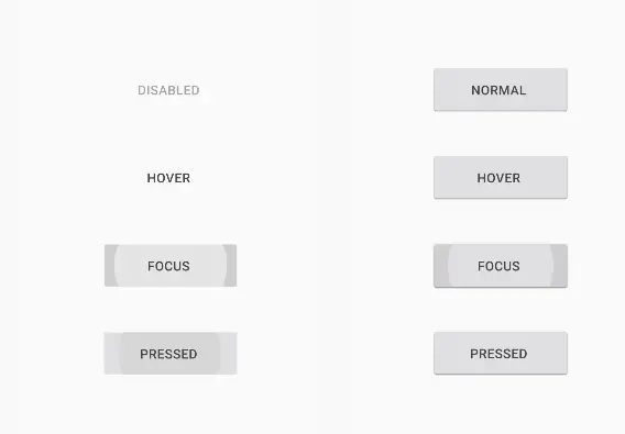 “浮动”之说是因为,Material Design的设计指导这次着重关注了z轴(垂直于我们手机平面的那根轴)的存在。按钮按照z轴位置划分,有三种类型,扁平(Flat),抬升(Raised),浮动(Floating)。