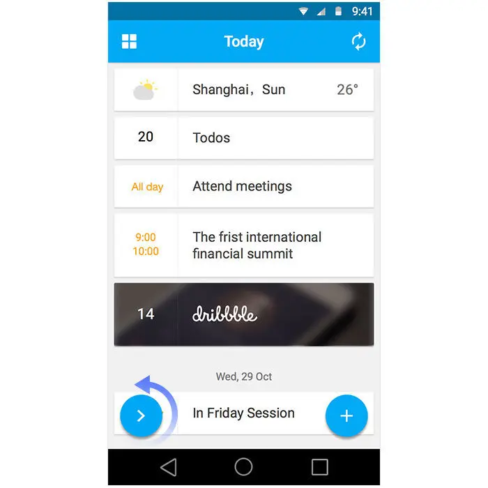 是的,就像“抽屉导航”那样,最早被零散使用的交互要素,进入Android的设计规范后,会在接下来的时间中被广泛使用,乃至扩散到iOS和桌面端。这次同样最具代表性和潜力的两个元素,应该是炙手可热的浮动按钮(FAB,Floating Action Button)和卡片。