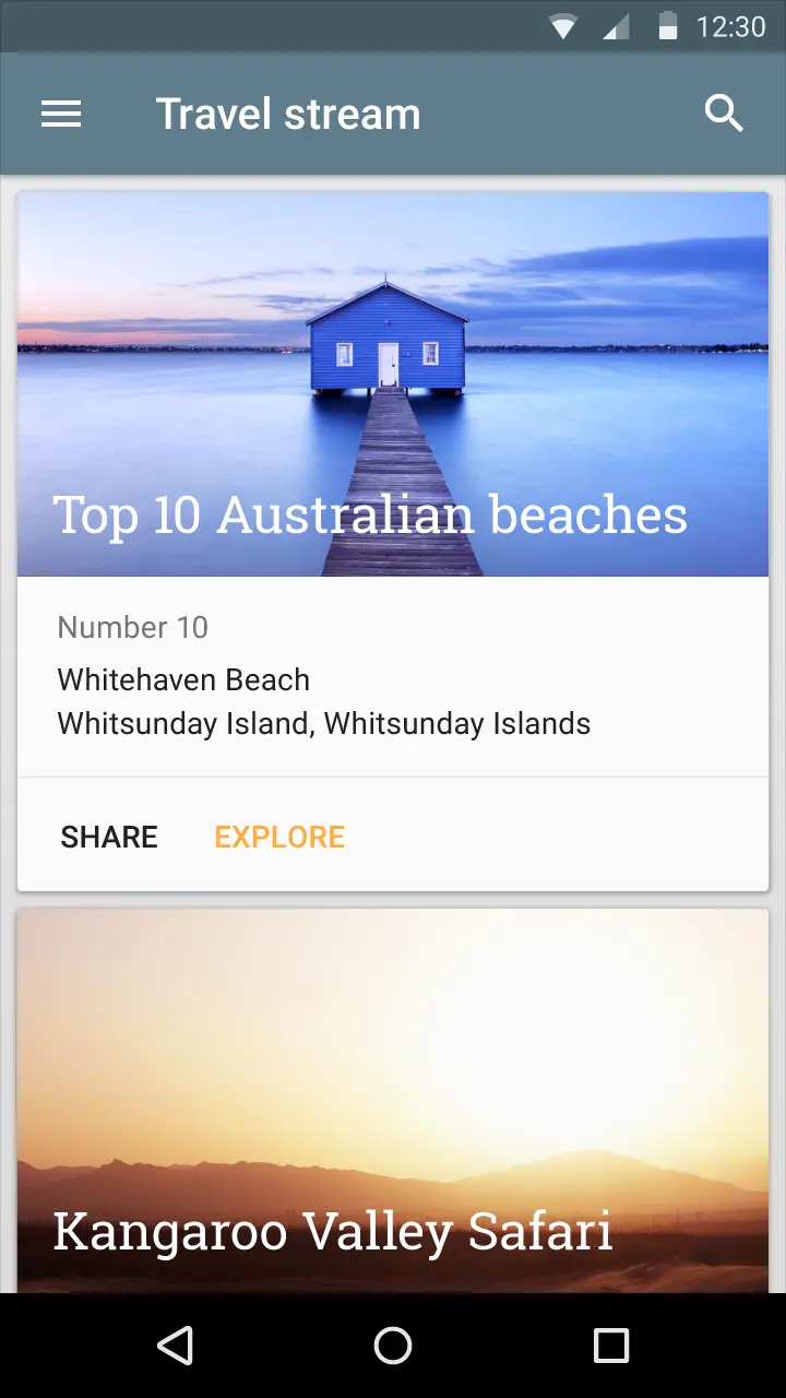 卡片呈现信息的实践其实一直都有,得到Material Design 强调后应该很快会迎来一波爆发。从社区讨论看来,直接使用卡片的欲望也是相当强烈的 ,但根据Material Design的官方指导的建议,卡片的应用场景和与列表应该要有明确的区分,而不是盲目替换,该用列表视图的场景,还是应该坚持使用列表,以免割裂浏览体验。