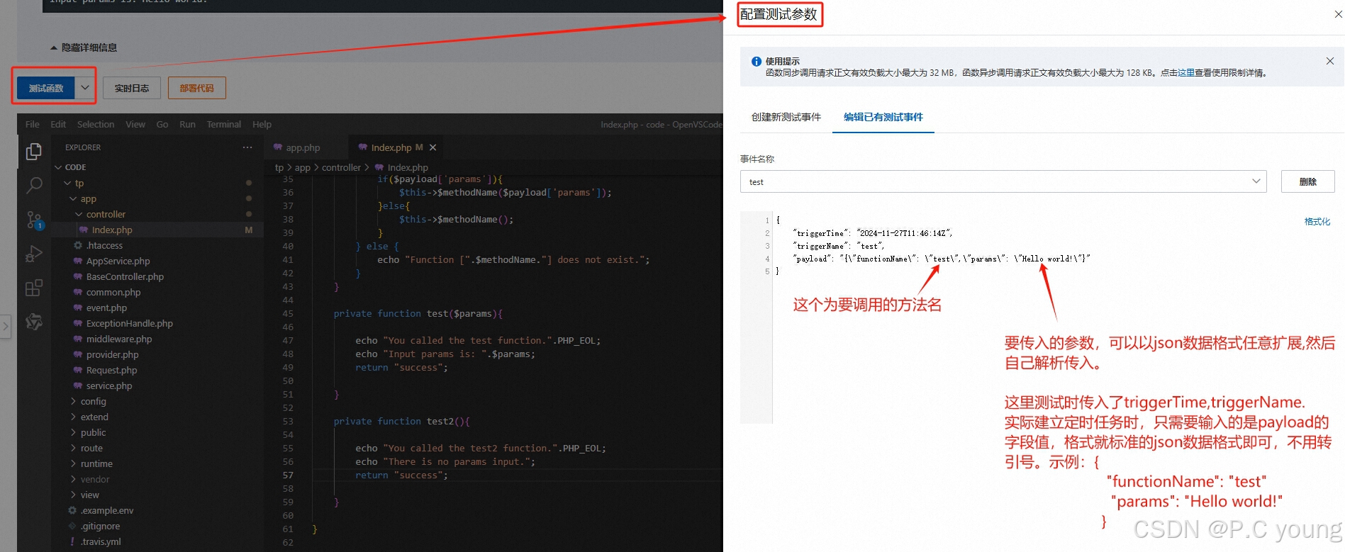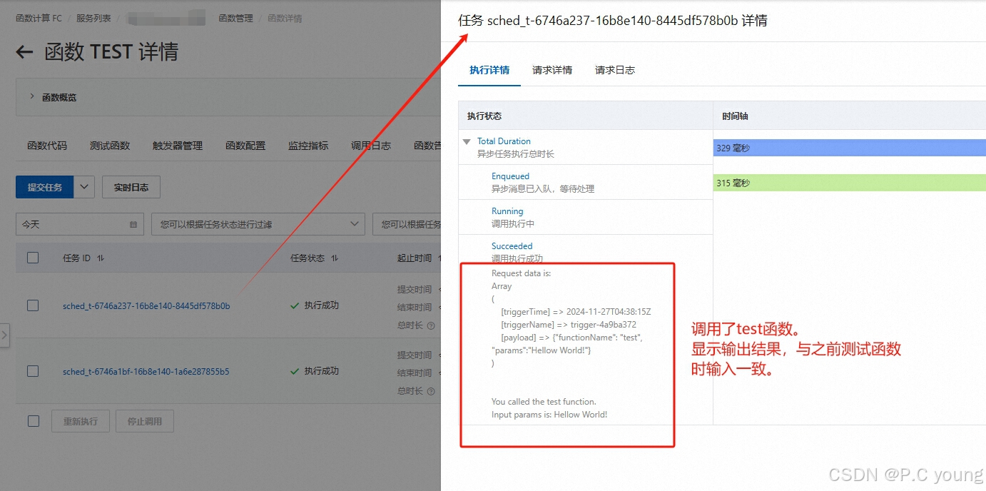 此数据,前两个参数为定时触发器的执行时间和定时任务名称。第三个“payload”,是重点需要解析的数据,是调用函数时,自己需要传入的参数。我这里为了在index方法里面,自动根据参数名称调用对应的函数,就定义了一个自己的参数格式,同样是json格式: