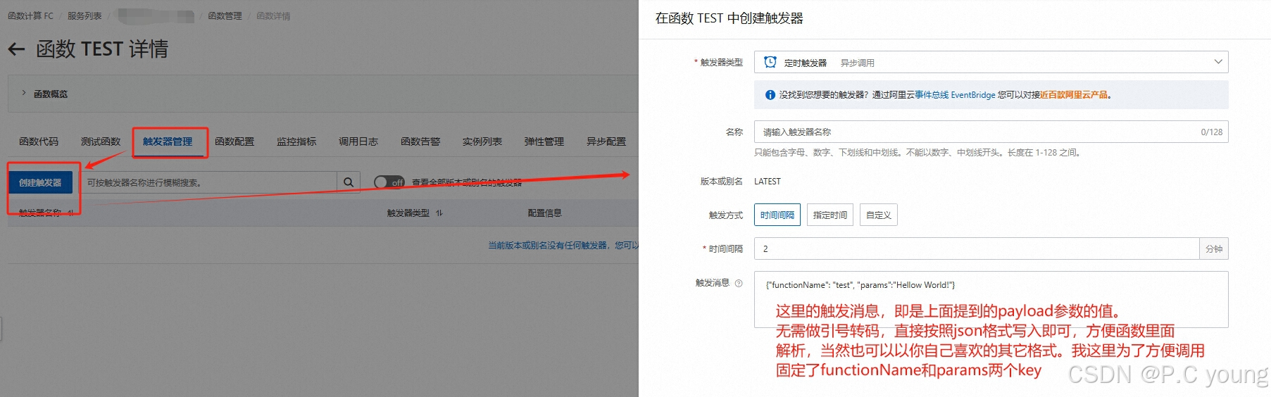 "payload": "{\"functionName\": \"test2\",\"params\": \"你的参数。也可以为空\"}"