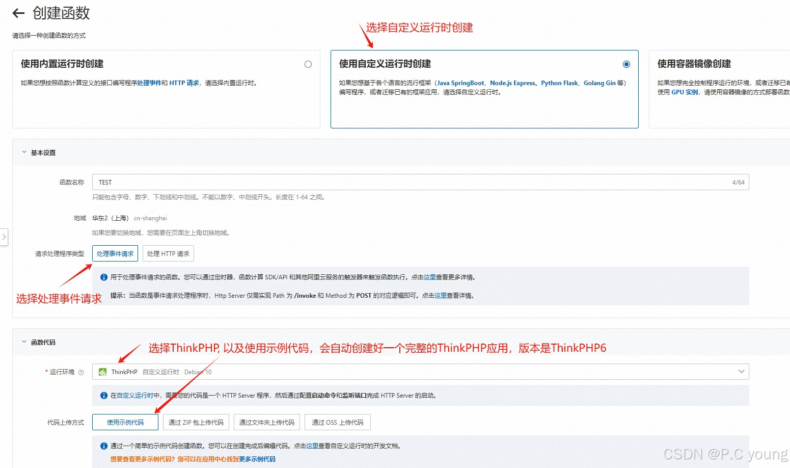 创建函数时有提示:当函数是事件请求处理程序时,Http Server 仅需实现 Path 为 /invoke 和 Method 为 POST 的对应逻辑即可。