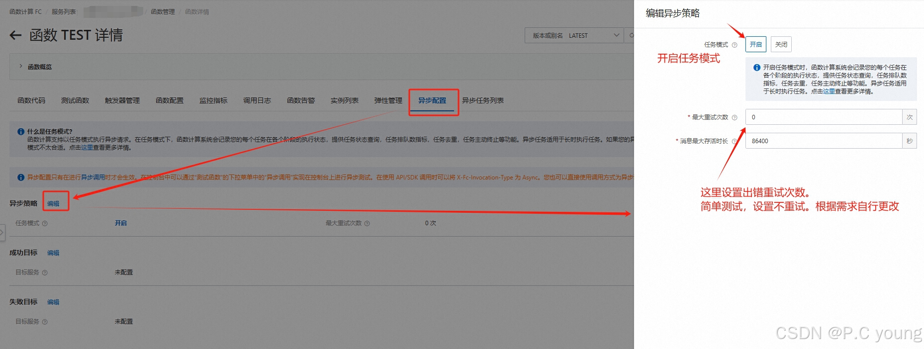 要自动执行定时触发器任务,需要打开函数计算的任务模式。