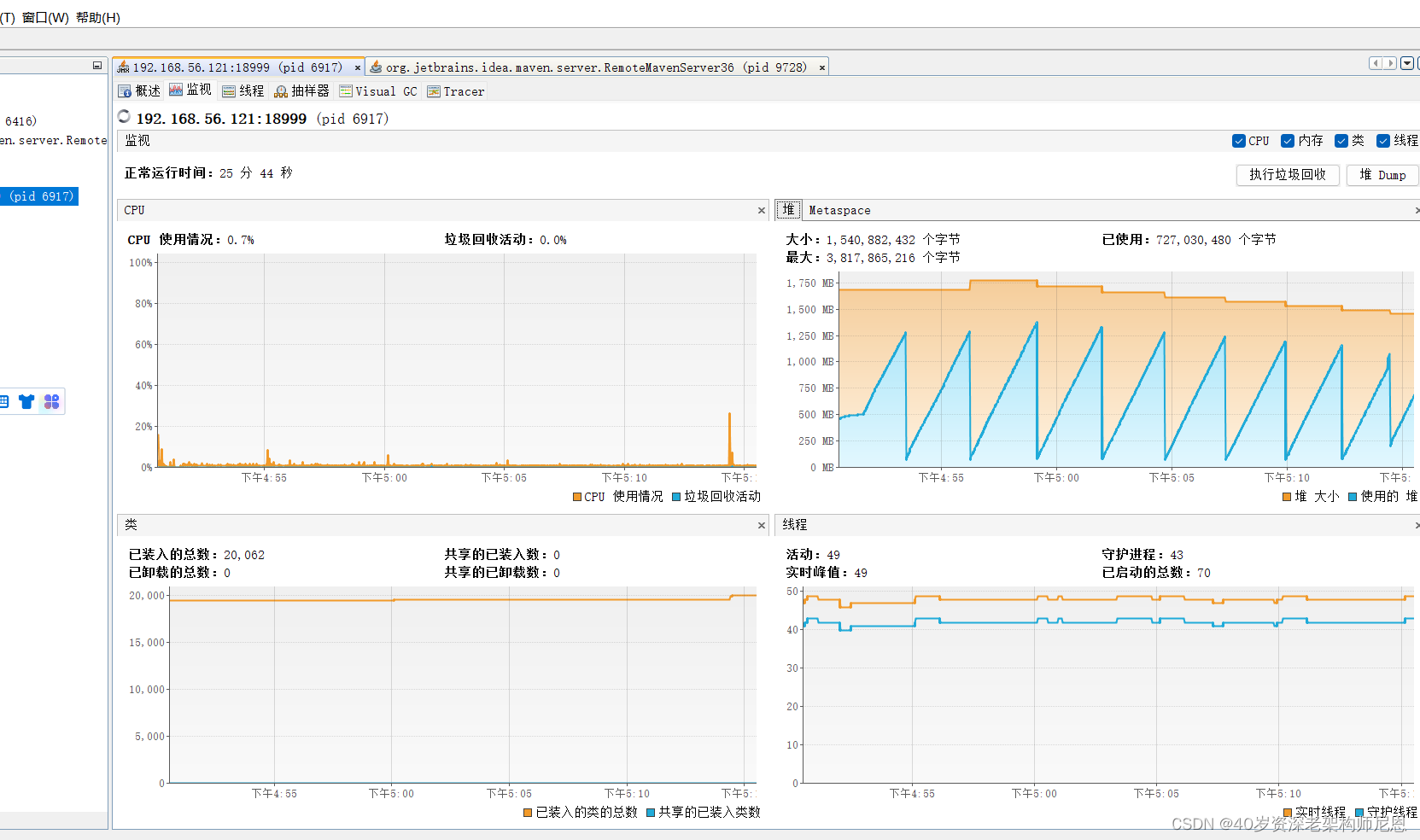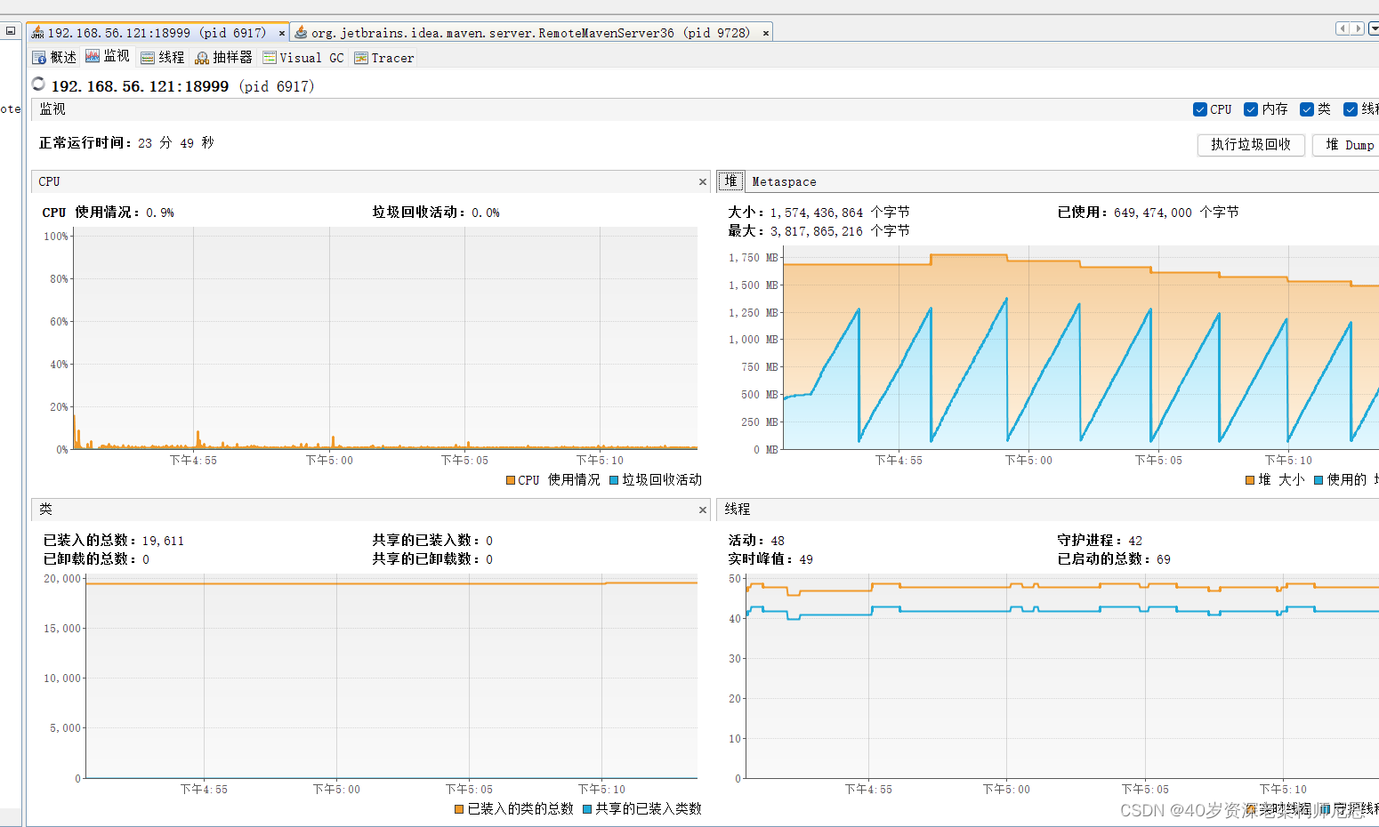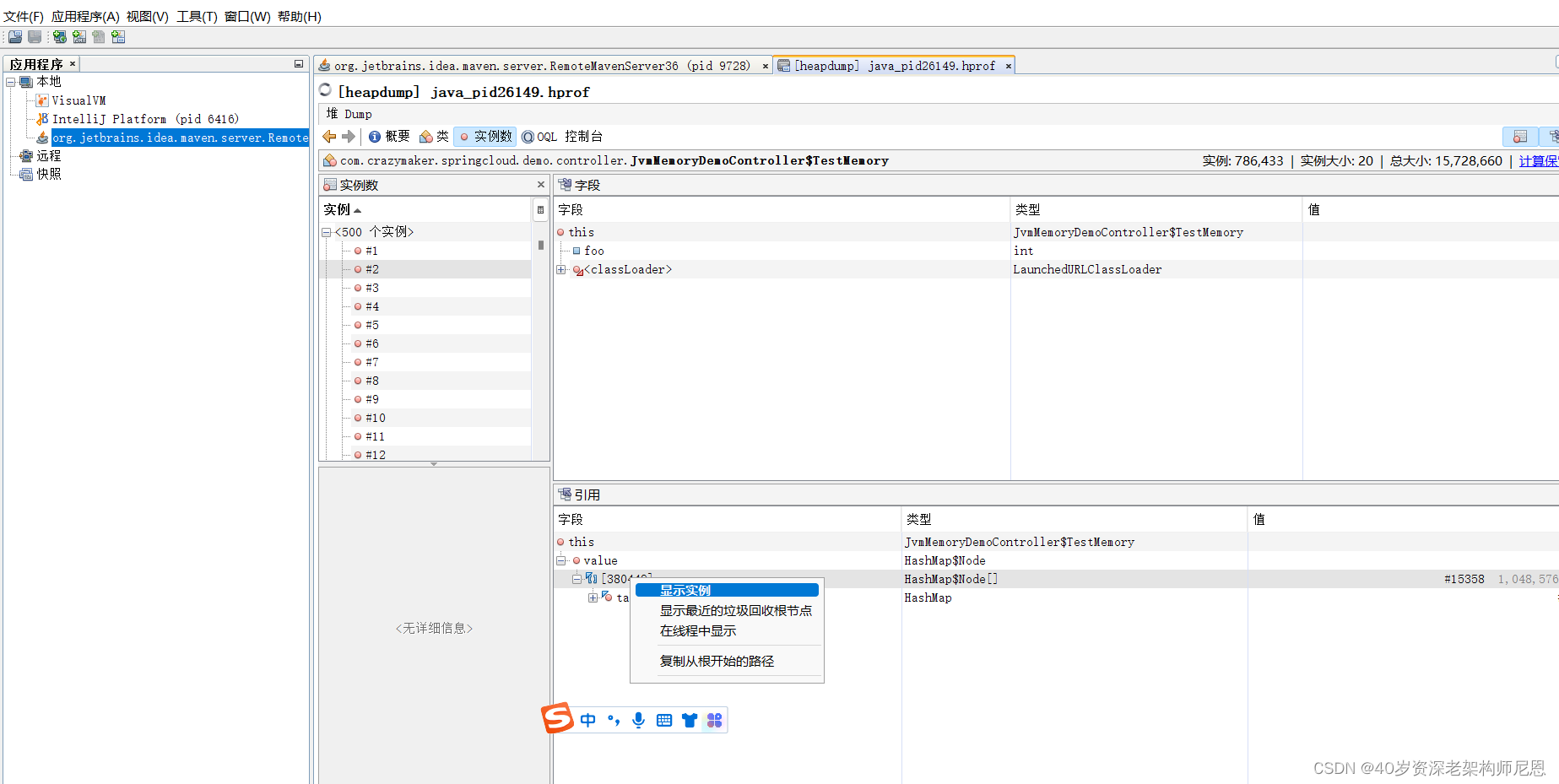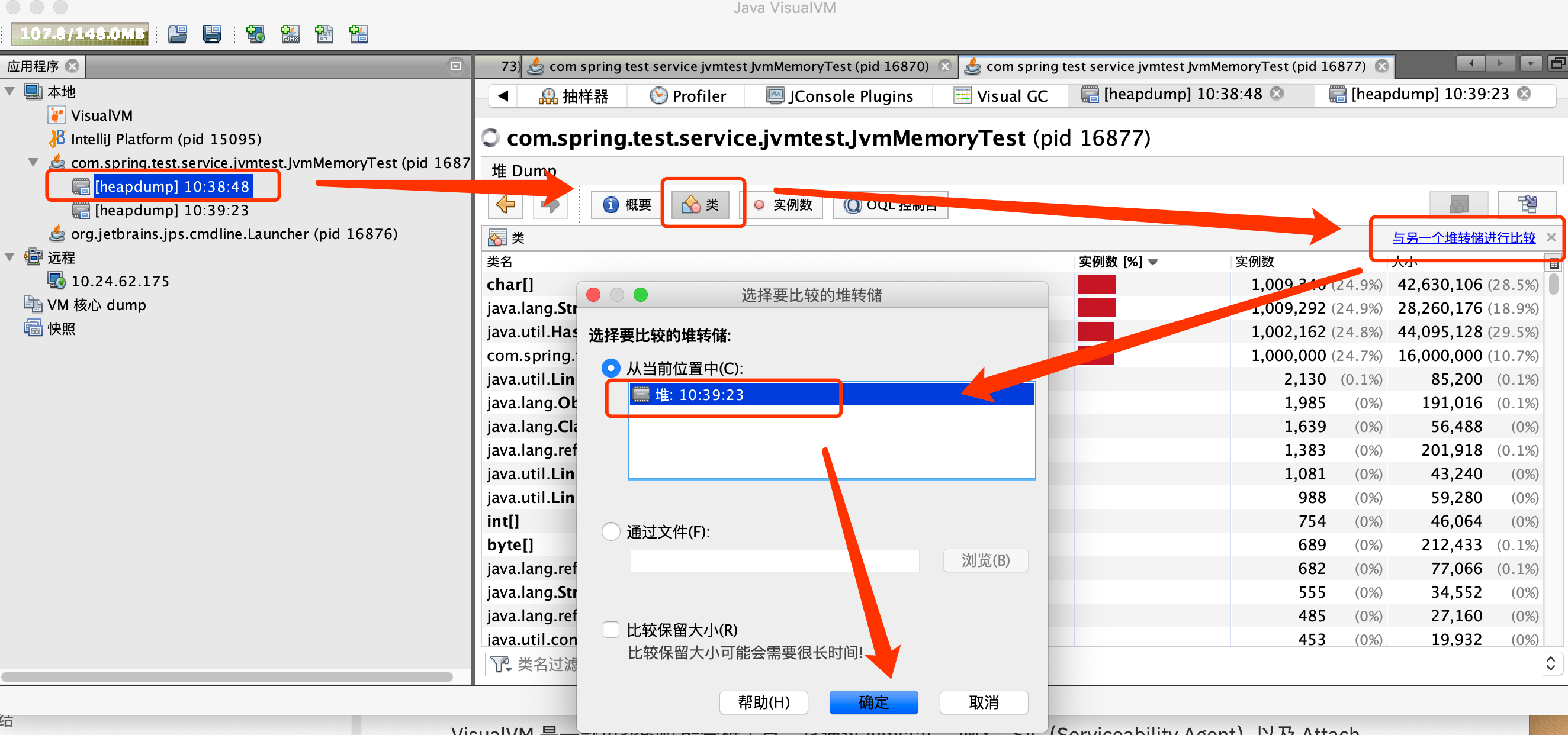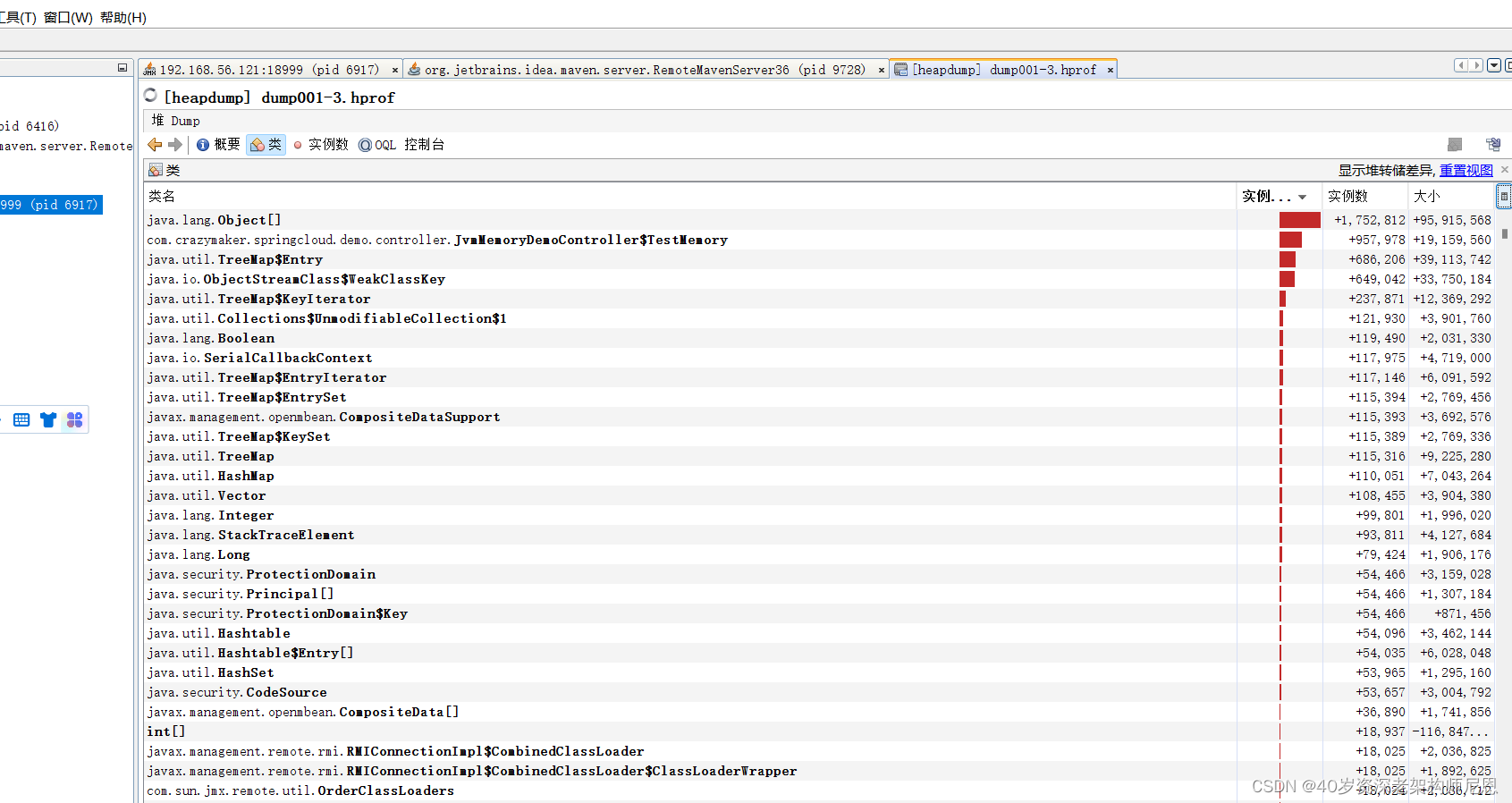 4.导出整个JVM 中内存信息,可以利用其它工具打开dump文件分析,例如jdk自带的visualvm工具