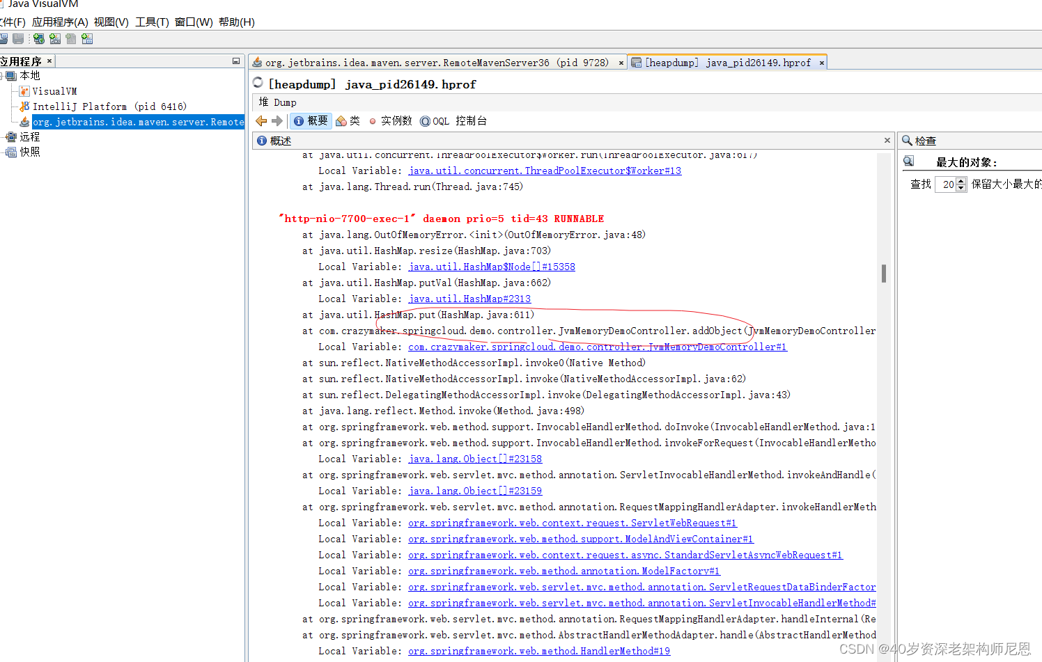 OOM后系统已挂,使用JVisualVM分析内存溢出OOM