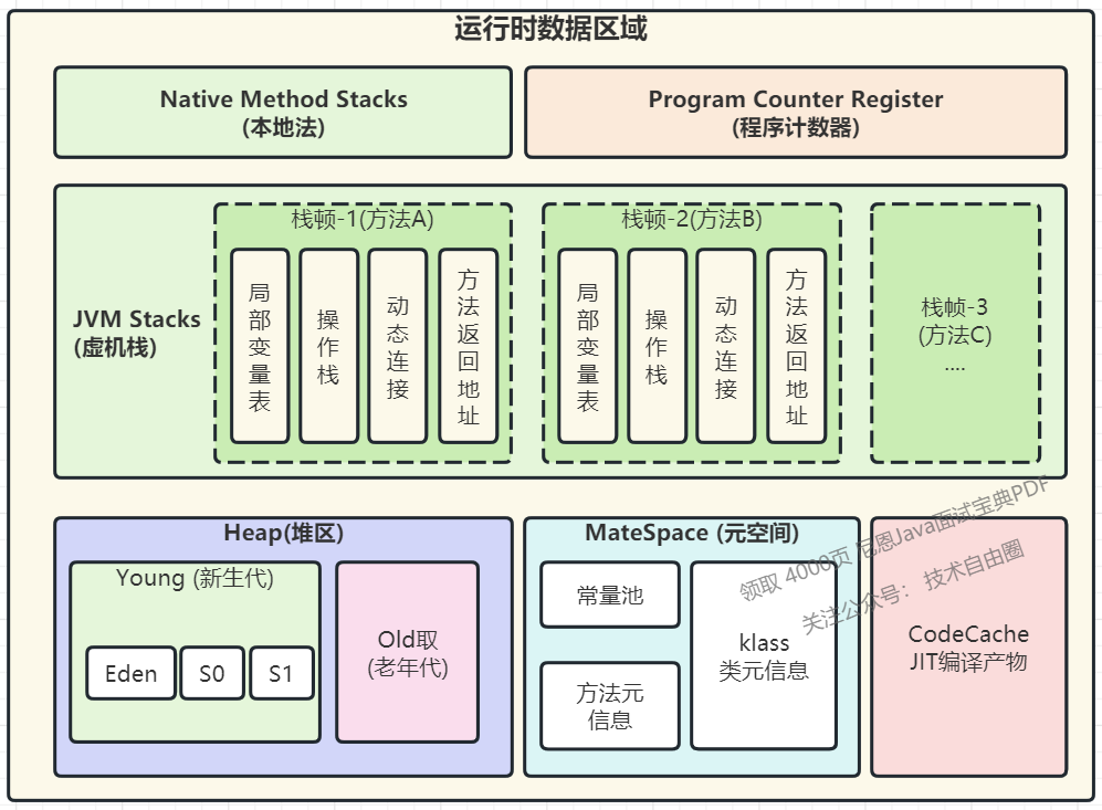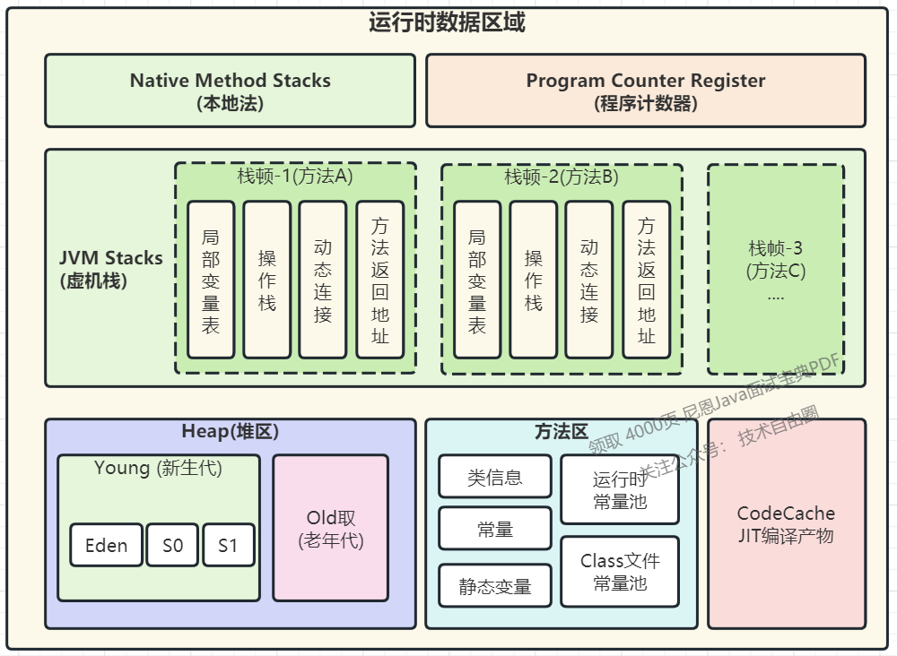 内存区域:JVM 运行时将数据分区域存储,强调对内存空间的划分。