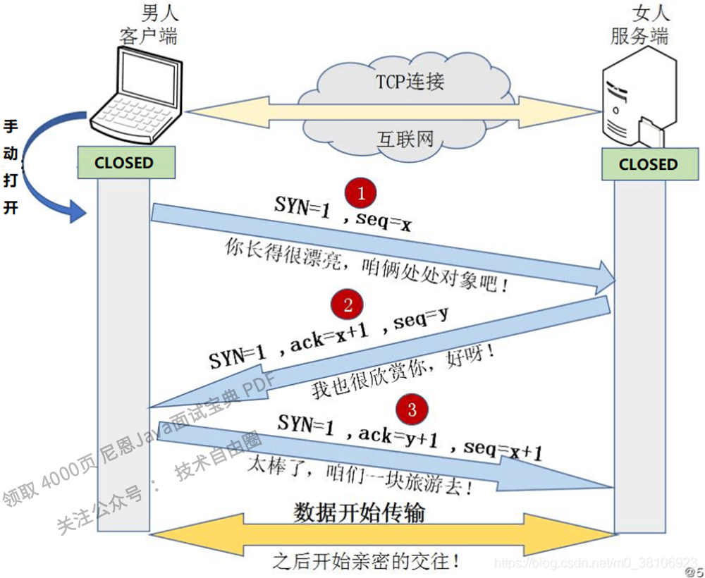 - 7、为什么TCP建立连接协议是三次握手,而关闭连接却是四次握手呢?为什么不能用两次握手进行连接?