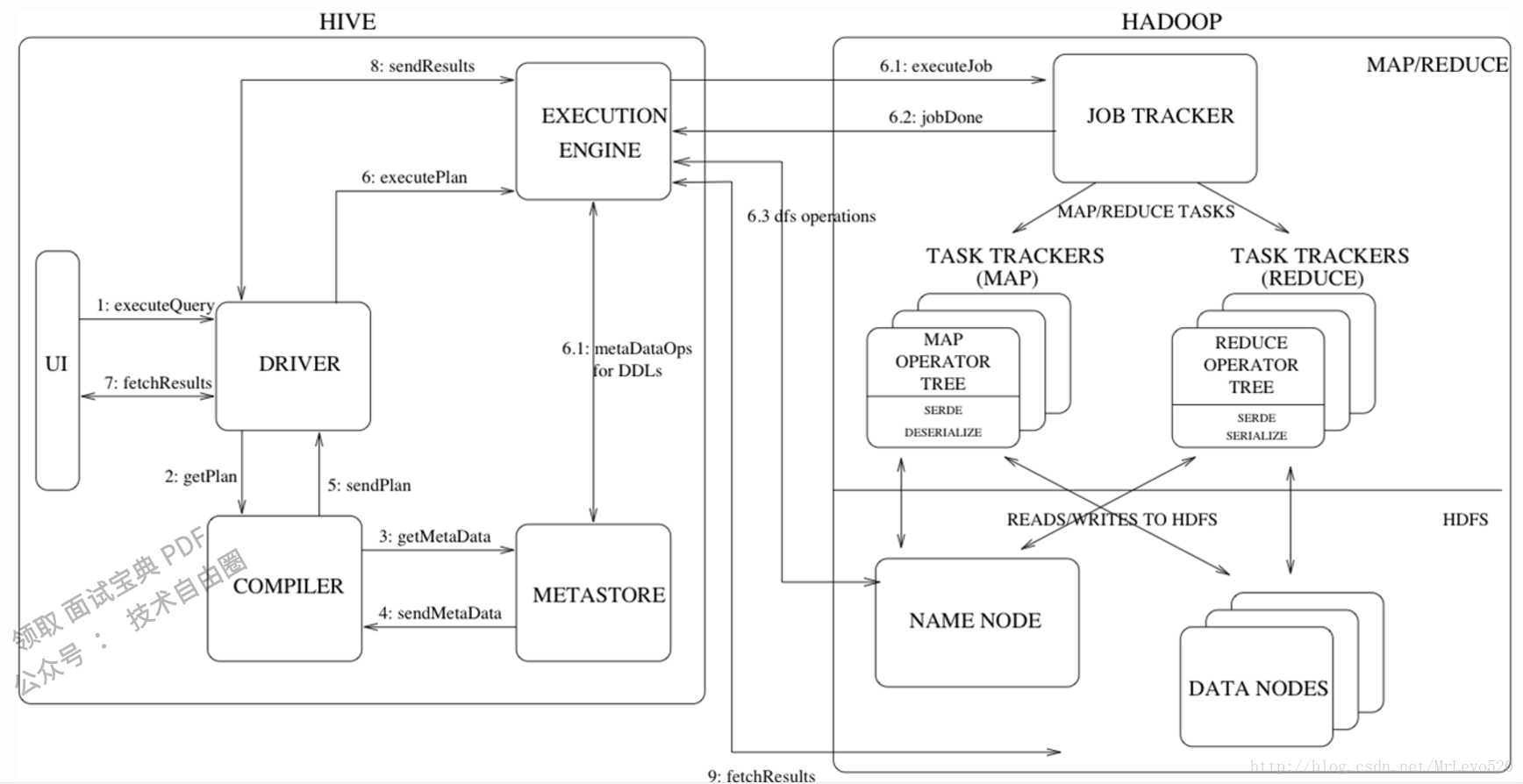 由上图可知,hadoop和mapreduce是hive架构的根基