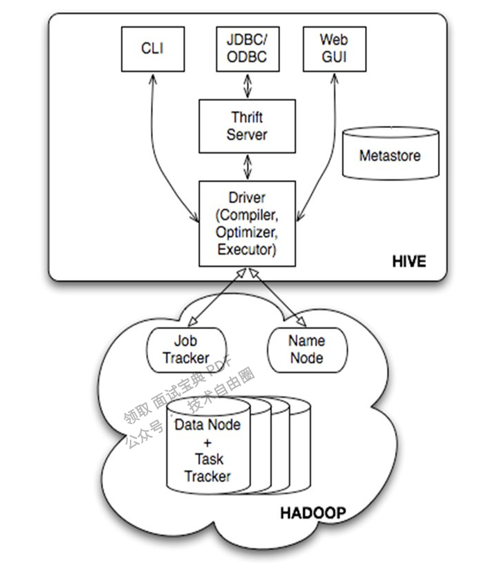 下面来讲讲hive的技术架构,大家先看下面的架构图: