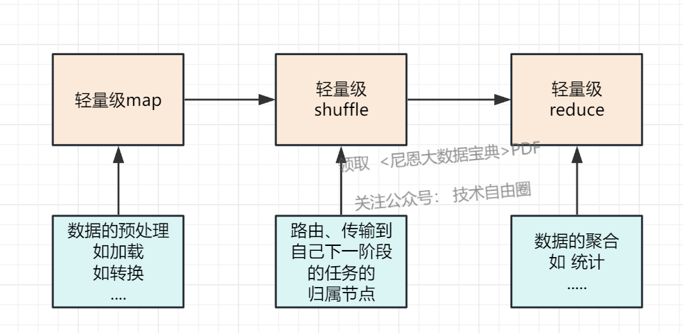 shuffle洗牌的职责也太简单:负责的来说,shuffle洗牌就是数据的传输和路由。 直观一点来说,shuffle洗牌 把计算过程的中间件数据, 传输到后面的计算所需要的节点。