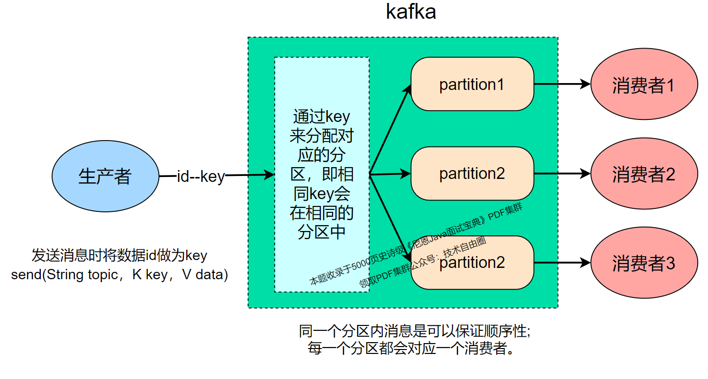 方案二:既然kafka默认保证同一个partition分区内的消息是有序的,则producer可以在发送消息时可以指定需要保证顺序的几条消息发送到同一个分区,这样消费者消费时,消息就是有序。