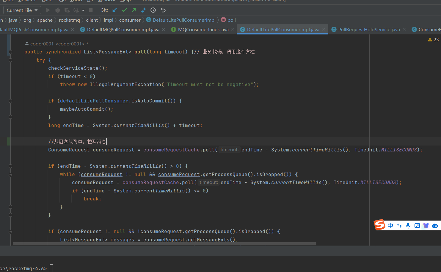 跟踪源码可以看到,消息拉取的时候,DefaultLitePullConsumerImpl工作过程基本与DefaultMQPushConsumer过程相似。