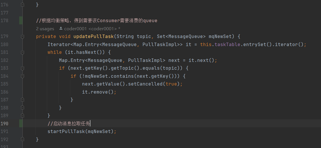 DefaultLitePullConsumerImpl 类中的一个方法,首先根据负载均衡服务分配到的 queue分区,启动 拉取任务