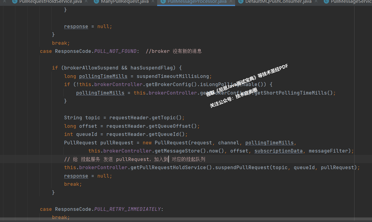 PullMessageProcessor 里面的 processRequest 方法是用来处理pullRequest 拉消息请求.