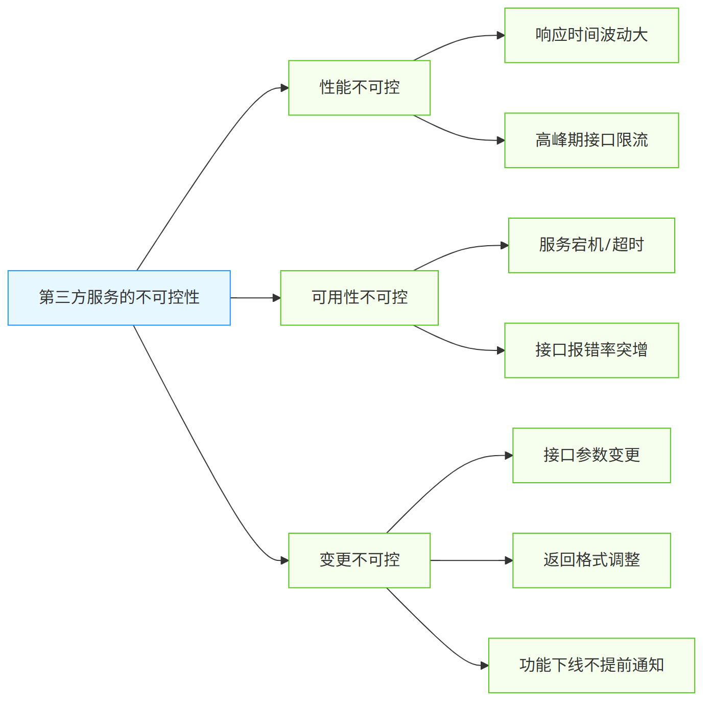 之所以要花大量精力应对第三方服务问题,核心原因在于其三大不可控性: