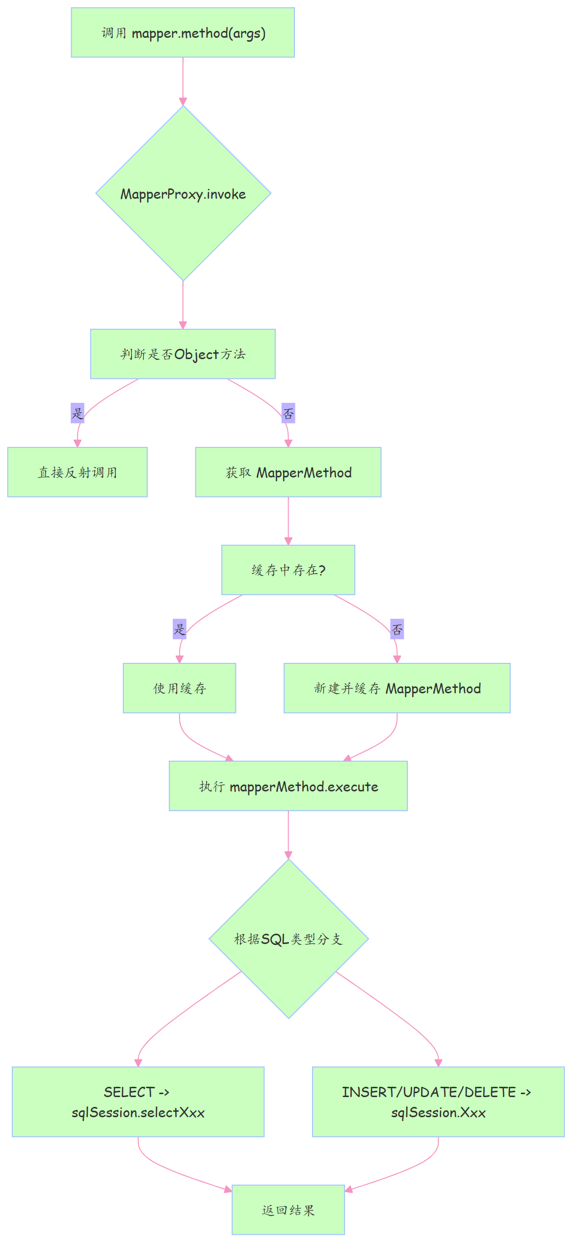 | 拦截调用 | MapperProxy.invoke | 拦截所有接口方法调用 |