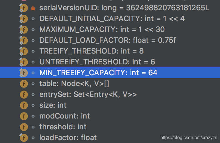 hashMap的所有属性都在这里能作为容器的只有 table 和 entrySet 两个属性是集合,那我们就看看到底是哪个容器