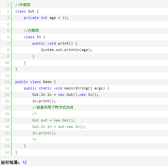 Out.In in = new Out().new In()可以用来生成内部类的对象,这种方法存在两个小知识点需要注意