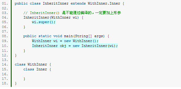 可以看到子类的构造函数里面要使用父类的外部类对象.super();而这个对象需要从外面创建并传给形参。