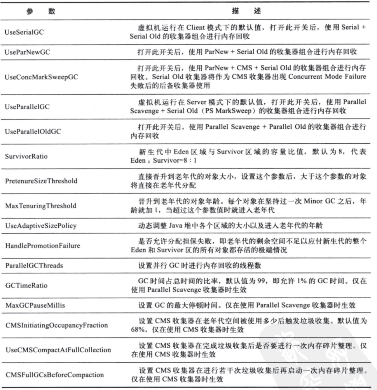 前面提到过,新生代使用复制收集算法,但为了内存利用率,只使用其中一个Survivor空间作为轮换备份,因此当出现大量对象在Minor GC后仍然存活的情况时,就需要老年代进行分配担保,让Survivor无法容纳的对象直接进入老年代。老年代要进行这样的担保,前提是老年代本身还有容纳这些对象的剩余空间,一共有多少对象会活下来,在实际完成内存回收之前是无法明确知道的,所以只好取之前每一次回收晋级到老年代对象容量的平均大小值作为经验值,与老年代的剩余空间进行比较,决定是否进行full GC来让老年代腾出更多空间。