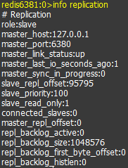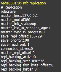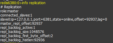 再把 redis6382 服务关掉,6380 又变回主服务,6381 的 master 信息重新指向 6380,如下信息: