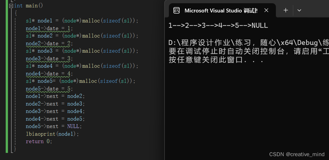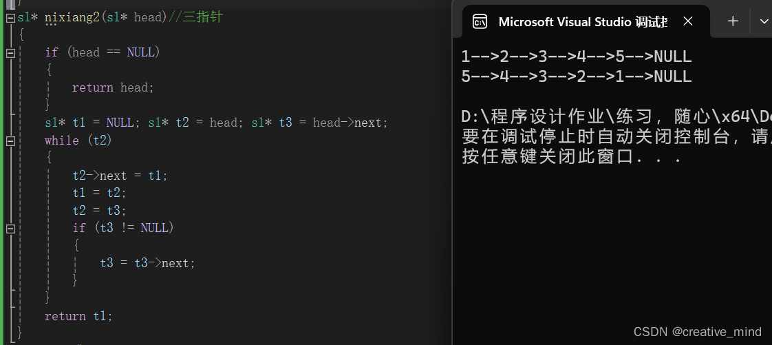 我来展示一下代码,我们手动输入,然后进行调用一个自编函数输出逆向的链表!