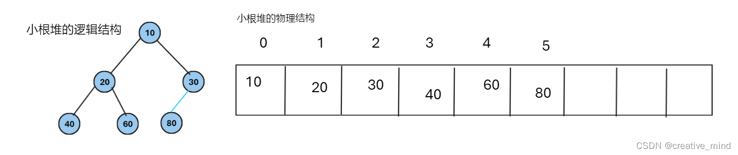 首先,堆排序的物理结构是数组,逻辑结构为二叉树。