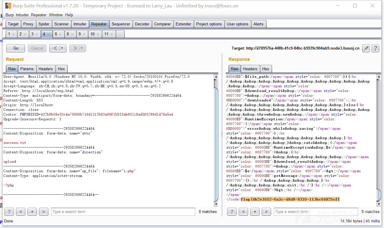 步骤三 根据hash_file构造的文件(即PHPSESSID值)进行替换原来的PHPSESSID得到flag
