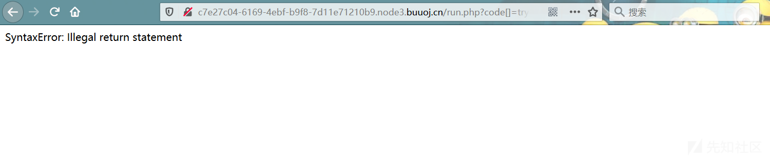 随便输个函数却给我返回SyntaxError,欺负我没学过JS。不过结合前文提示,确实不是PHP,而是nodejs写的,这就涉及到知识盲区了,没错全是知识盲区。复现后才知道,原来nodejs是有沙箱逃逸的,可以google hack出HackIM 2019 Web的一道题和这个题类似,链接在这。