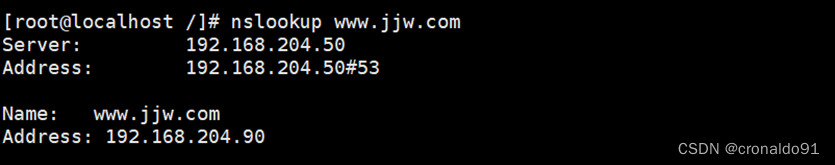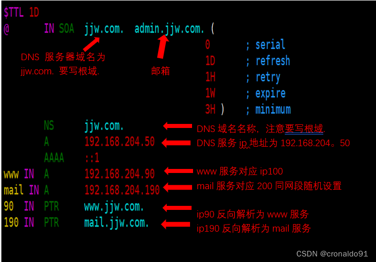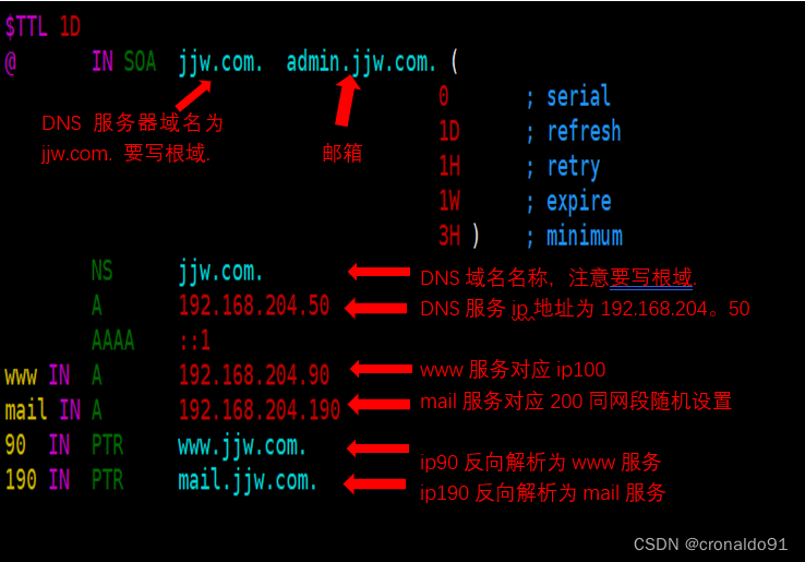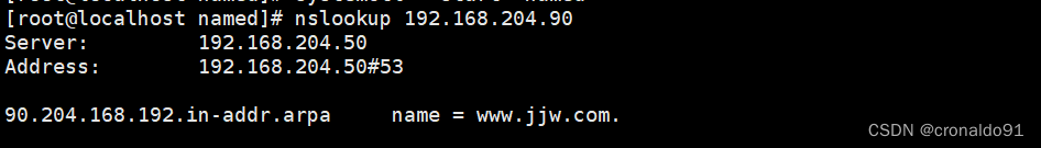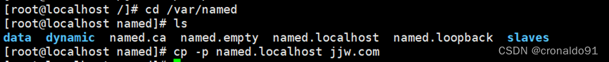 ③ 区域数据配置文件模板位置:/var/named/named.localhost