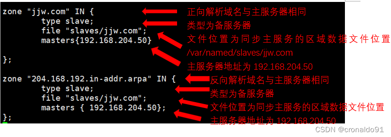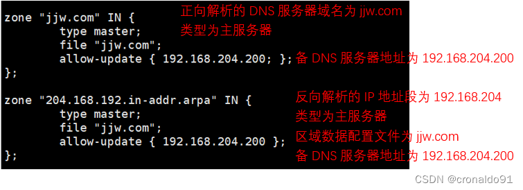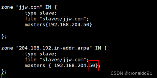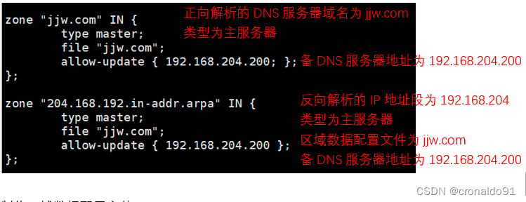 ② 区域配置文件位置:/etc/named.rfc1912.zones