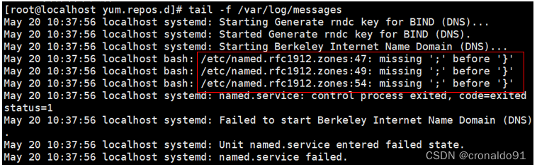 (6)如果配置文件都没问题启动服务报错,实时查看/var/log/messages日志的报错。