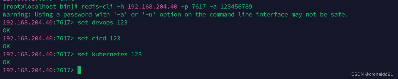 redis-cli -h 192.168.204.40 -p 7617 -a 123456789