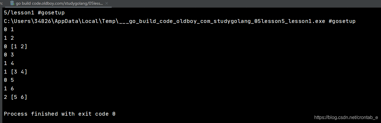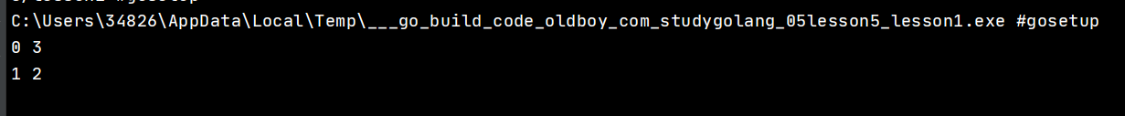 fmt.Println(i, j) //打印结果下标
