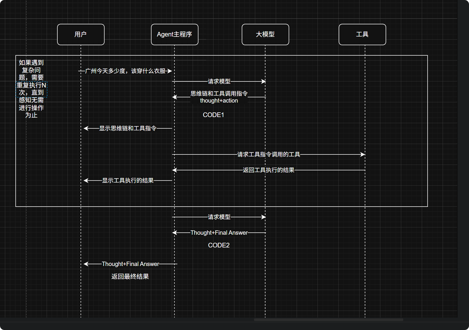 通过思维推理(Reasoning)->工具行动(Action)->感知结果(Observation)的短周期循环替代传统的“先完整规划,再执行”模式的智能体。