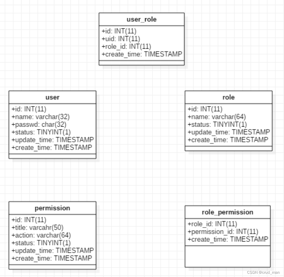 用户和角色之间构成多对多的关系,角色和权限之间也构成多对多的关系,那既然是多对多 ,就要有关系表来维持两个表之间的关系。