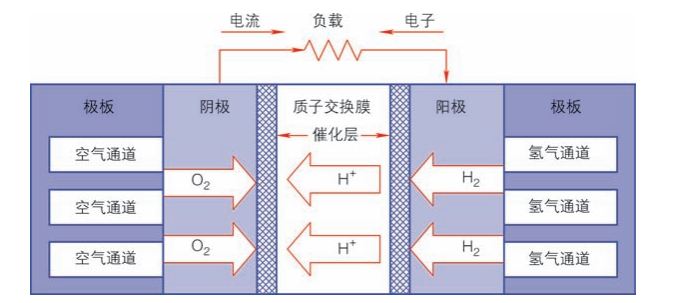 燃料电池单体是由两个电极夹着电解质的“三明治”结构