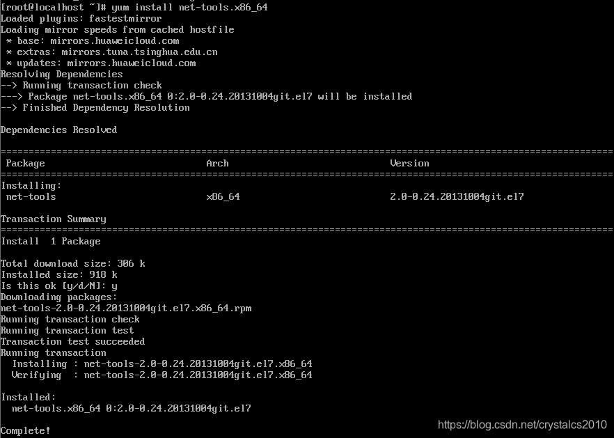 我们发现ifconfig这个命令是在net-tools.x86_64这个包里,接下来我们安装这个包就行了
