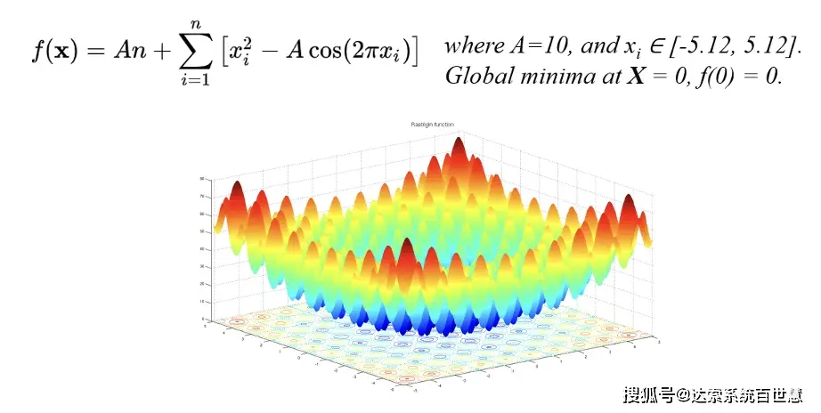 测试示例:从2D到100D的Rastrigin函数