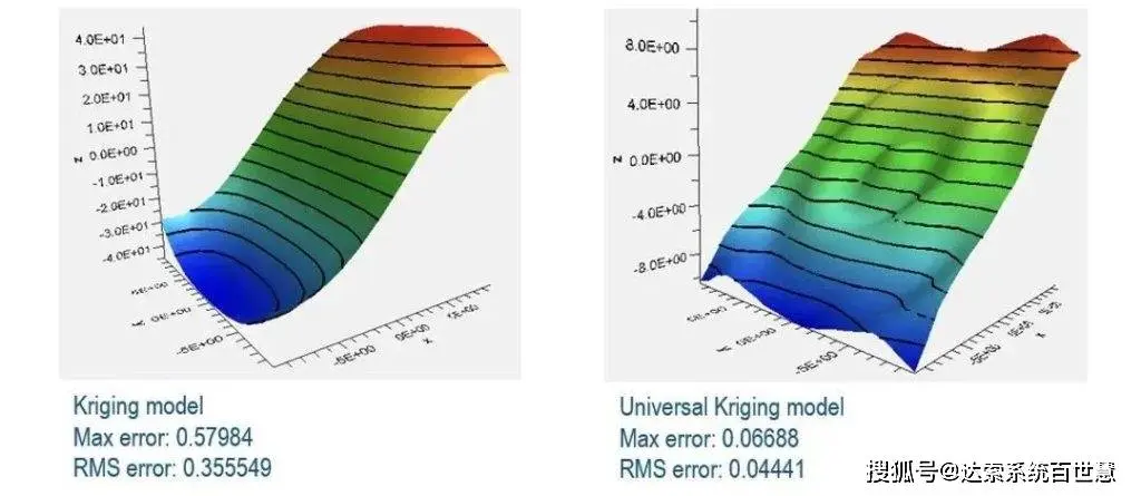 使用Universal Kriging技术构建的近似模型明显优于Kriging技术。