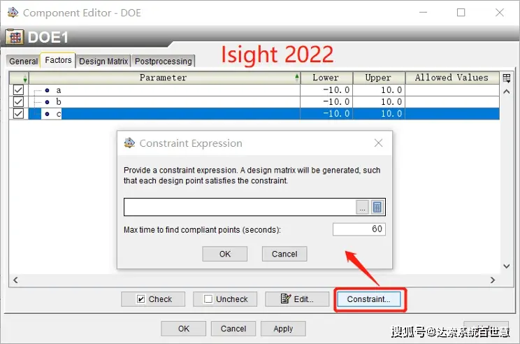 现在,Sobol Sequence技术还允许用户选择性地对因子施加约束,约束可以是一个或多个因子的函数。