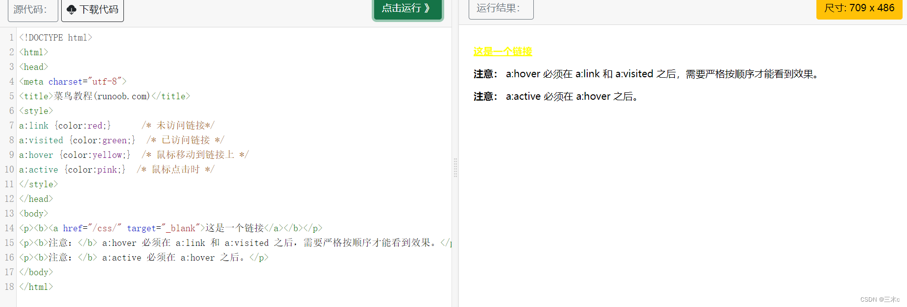 如图:鼠标移动到链接的颜色