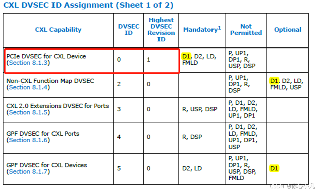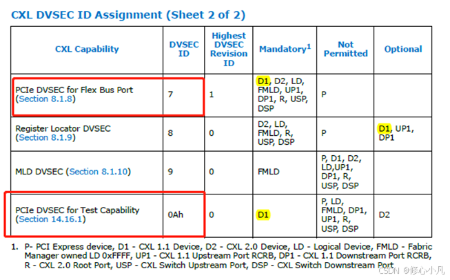 CXL 规范将配置空间寄存器分组为 **PCI Express 指定供应商特定扩展功能(DVSEC)** 结构,并通过 DVSEC Vendor ID 标识这些功能块。当 DVSEC Vendor ID 字段设置为 1E98h(版本 1)或 8086h(版本 0)时,表示该功能块由 CXL 规范定义。