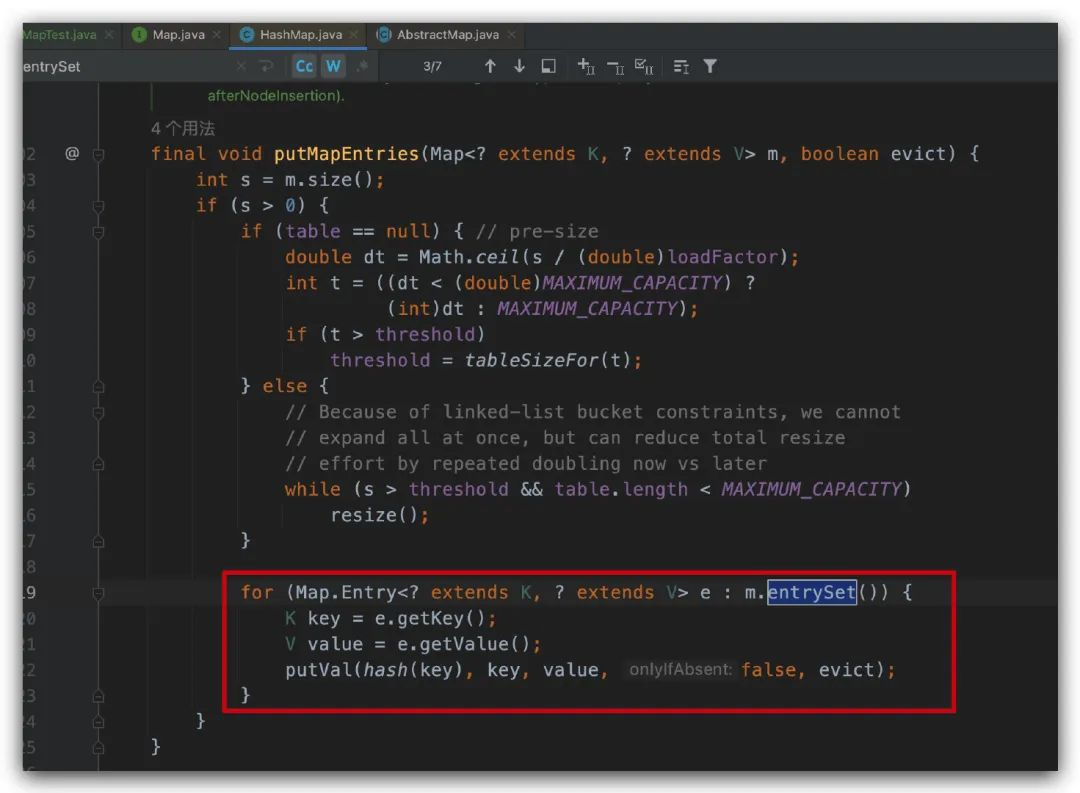putMapEntries 方法在我们调用 putAll 方法的时候会用到。