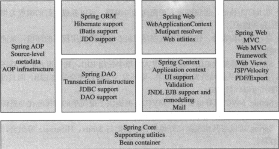 - Spring ORM:对其他一些ORM框架提供支持,如:JDO,Hibernate和iBatis等。